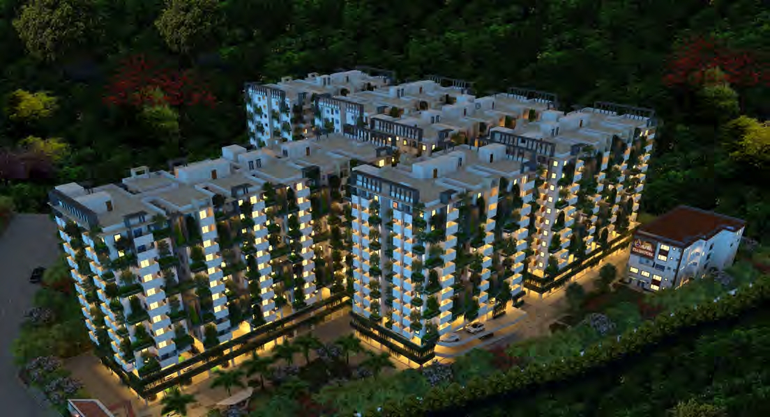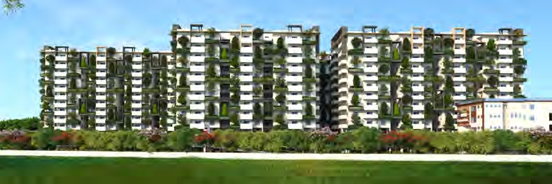 indoor living. GREEN ALPHA displays the artistic beauty of enviable green settings. Trees act as sound barriers which help in reducing the effect of noise pollution. Plants act as regulators of carbon dioxide emissions without which life would be impossible, as plants release oxygen for us to breathe. The vertical forest theme helps to reduce and filter pollutants and ensures a high degree of biodiversity.
